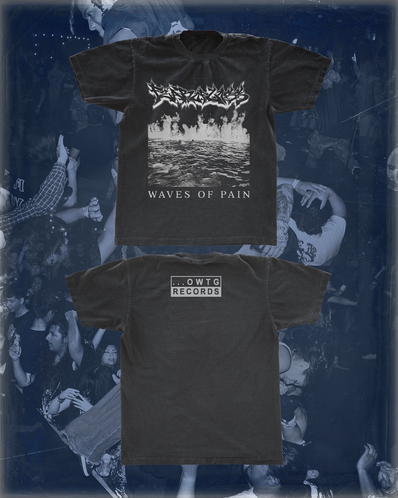 Official 2nd run of Fear of Loss x ...OWTG Records double sided shirt featuring cover art from Fear Of Loss EP "Waves Of Pain"